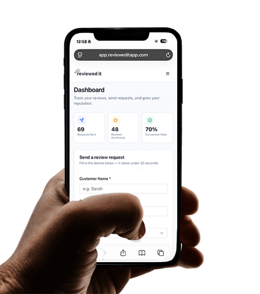 The average local job is worth hundreds of pounds. If one customer finds you because of a review you'd have otherwise never gotten, it's paid for itself many times over. Most businesses see that within the first week. We track all of the reviews secured from the platform, so you can monitor your own success.